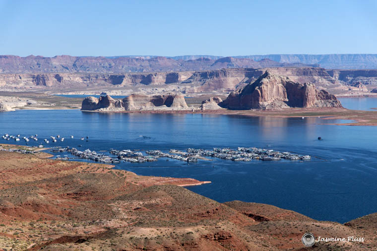 Text: Lake Powell mit Wahweap Bay und Yachthafen
