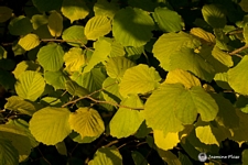 Haselnussbaumblätter im Abendlicht